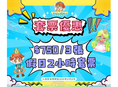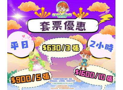 激抵!!! 平日2小時套票優惠!! $630 / 3張 (低至 $105 / 小時) $900 / 5 張 (低至 $90 / 小時) $1600 / 10張 (低至 $80 / 小時) 推廣期至2025年10月31日 入場券使用期至2025年12月31日 套票可即時使用 星期一至四均可使用 (公眾假期及特別日子除外) *此優惠受條款約束,詳情請向...